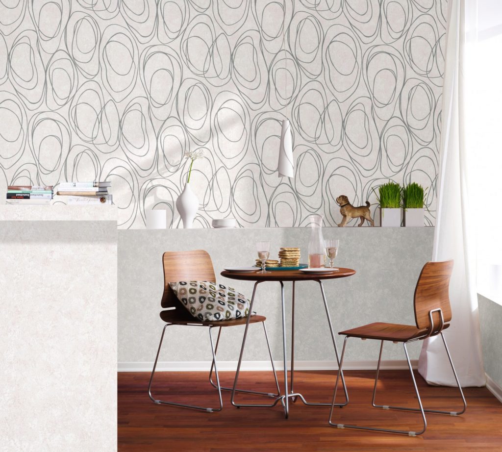 - Colani evolution- real works of art in world culture. The unique color palette, pearl shapes and unusual lines are the main elements of the product series. The collection of an outstanding master helps to visually enlarge the room and create home comfort. Soft geometric forms are in perfect harmony with plain wallpaper, the surface of which resembles decorative plaster. Perfectly fit into the modern interiors of the living room, hallway, kitchen.