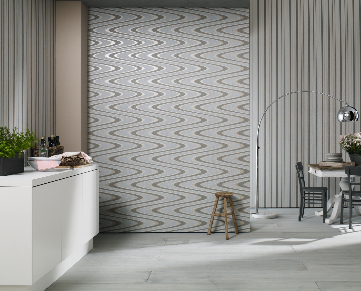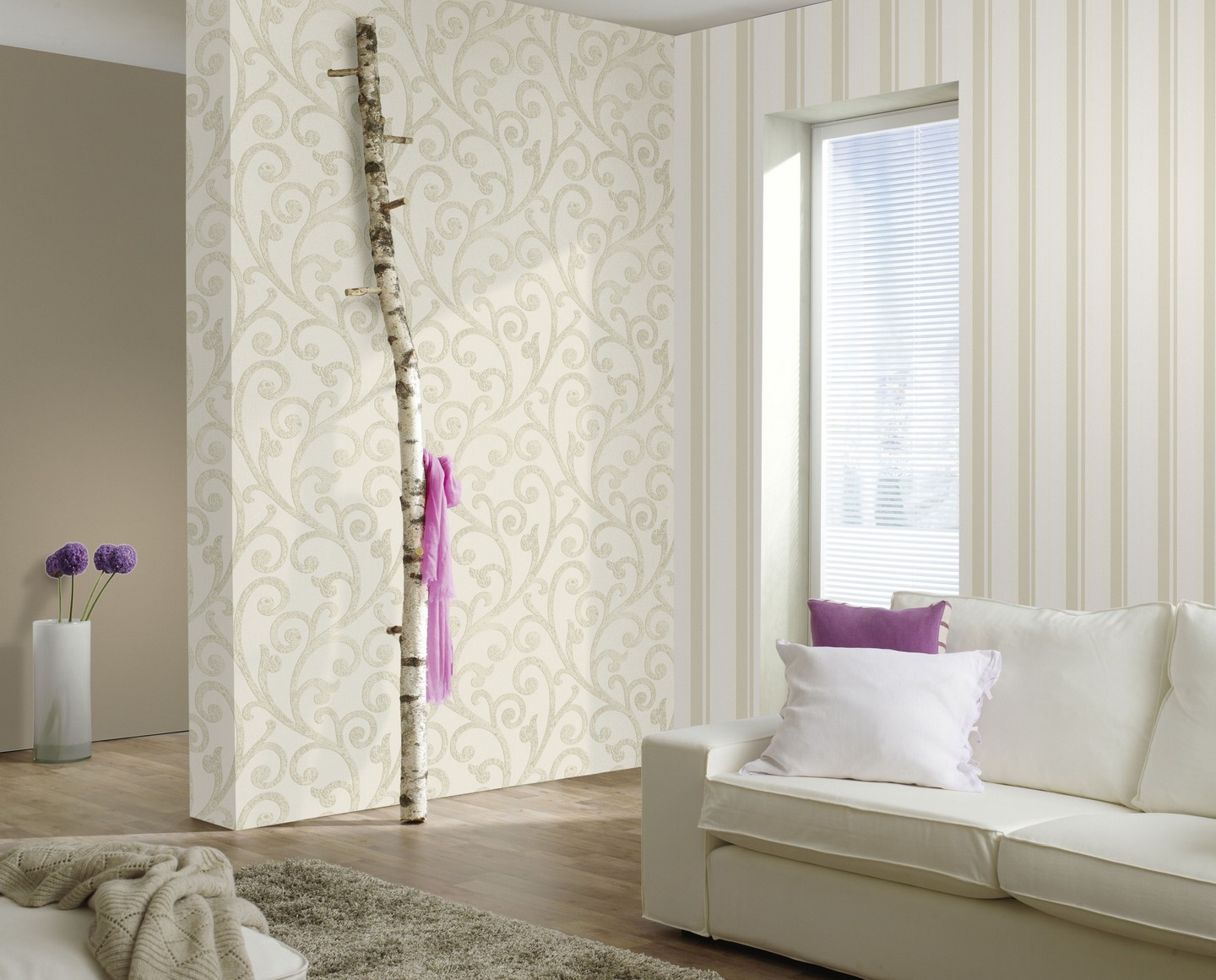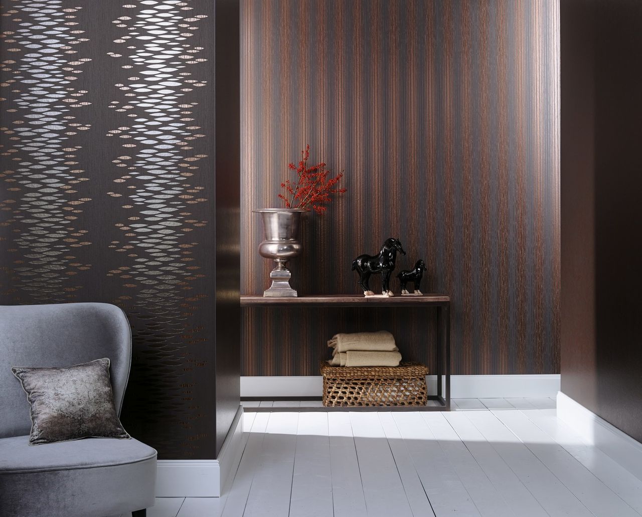 - At home - a collection of wallpapers that fit your choice: monotony, stripes. The color scheme emphasizes luxury and interior style. Combined with any kind of light (artificial and natural).