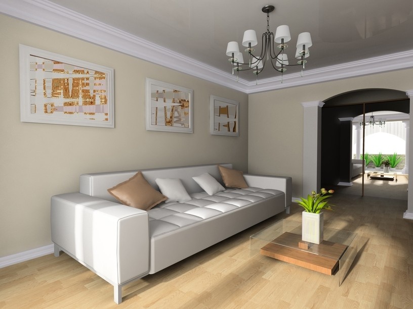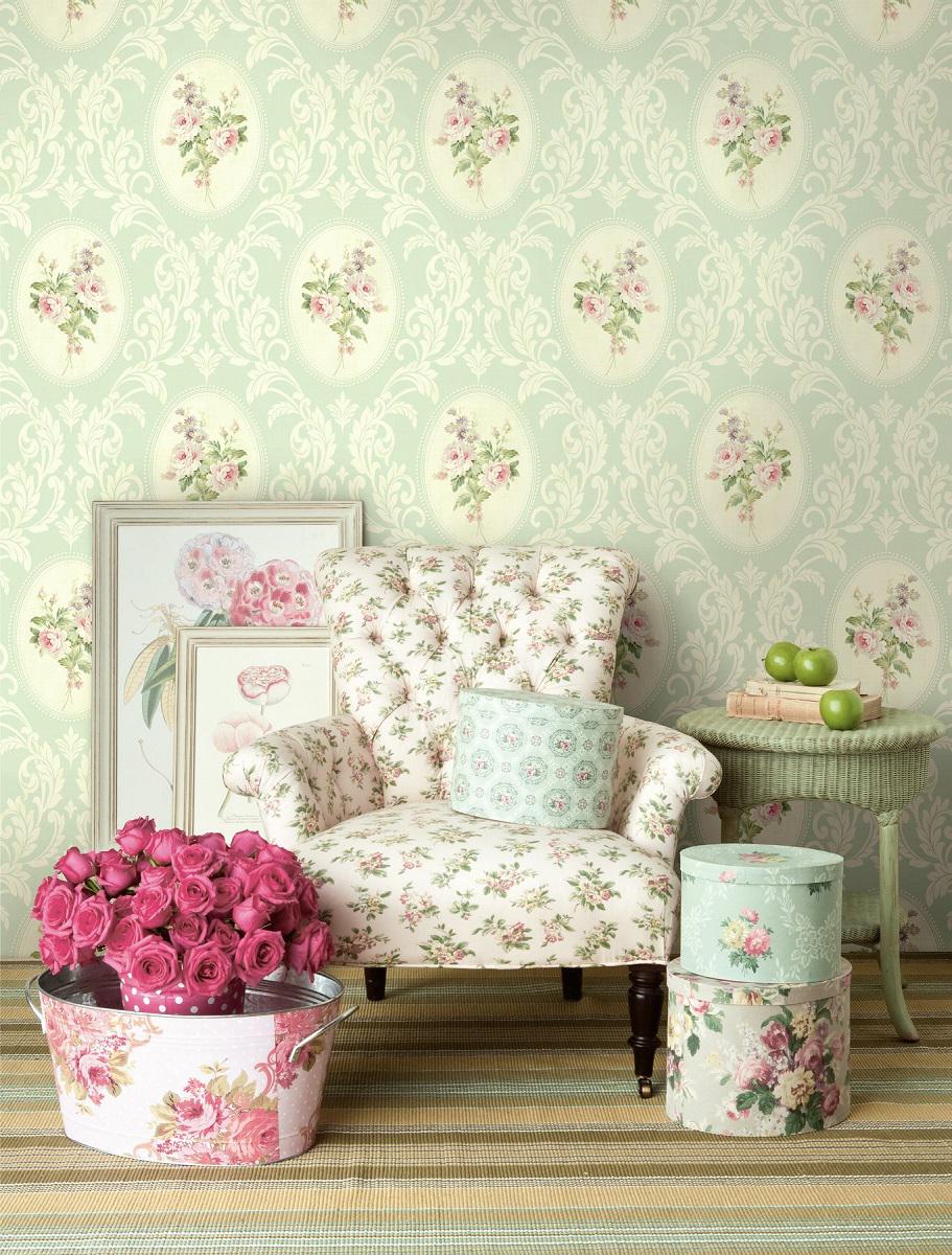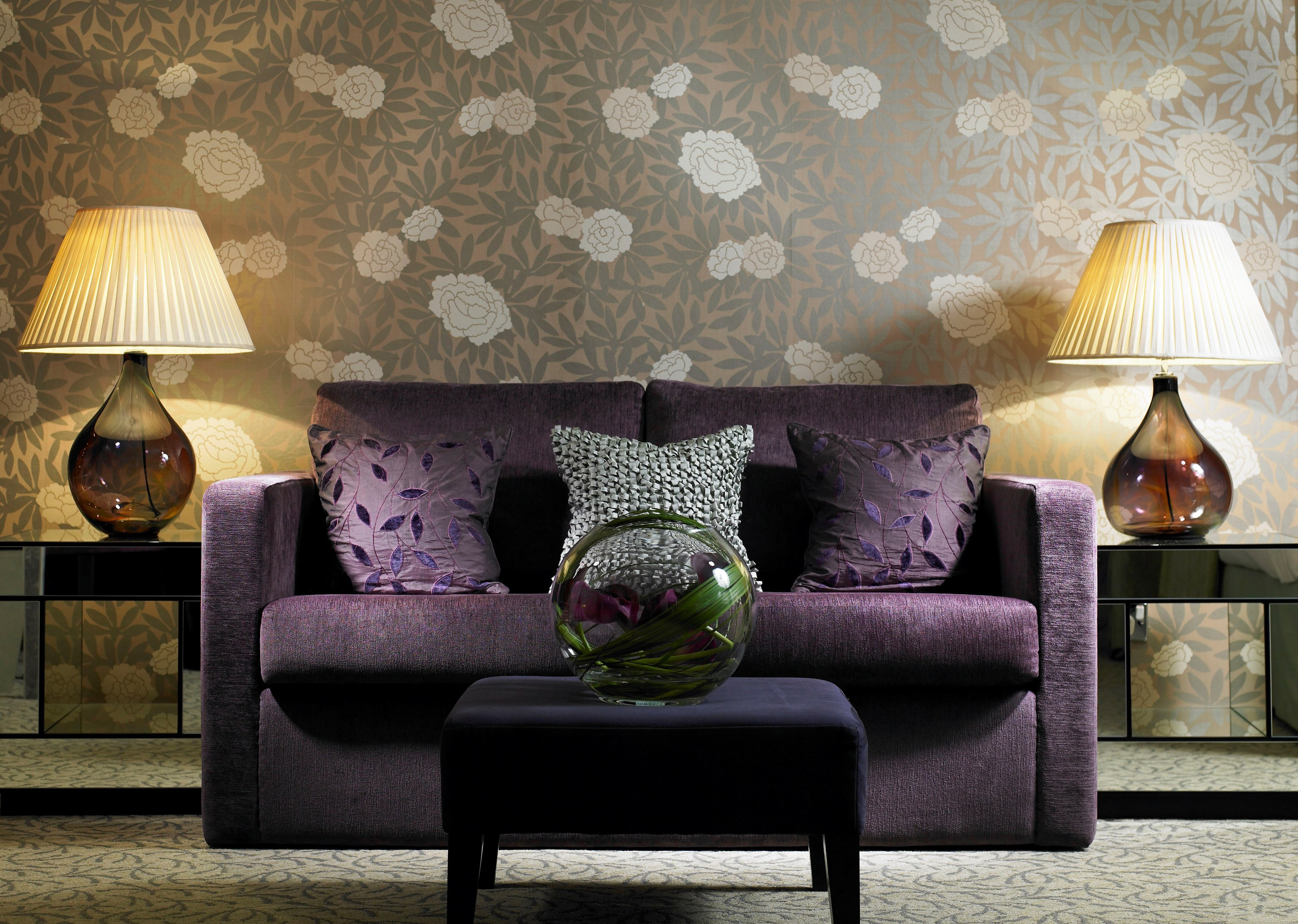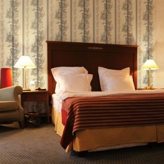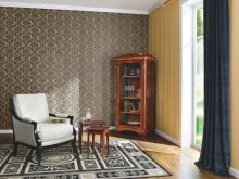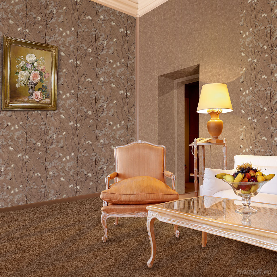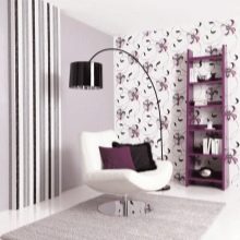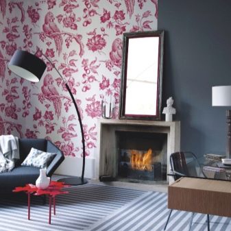 Flizelinovye wallpaper with floral patterns, mysteriously illuminated by the light of antique floor lamps, will create a pleasant atmosphere in the living room. Designer mirror cabinets will add depth to the space. Carpet of the same color as the wallpaper, fill the room with comfort.