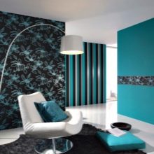 Walls made out the walls of apartments and private houses, sometimes even ceilings. Despite new types of finishing materials, the popularity of products is still high. Given the modern design and advantages, such as a washable surface and a solid structure, products are eagerly used in the interior design of any room. The bedroom will look stylish and fashionable with wall-paper striped wallpaper with alternating shades of blue and white.
