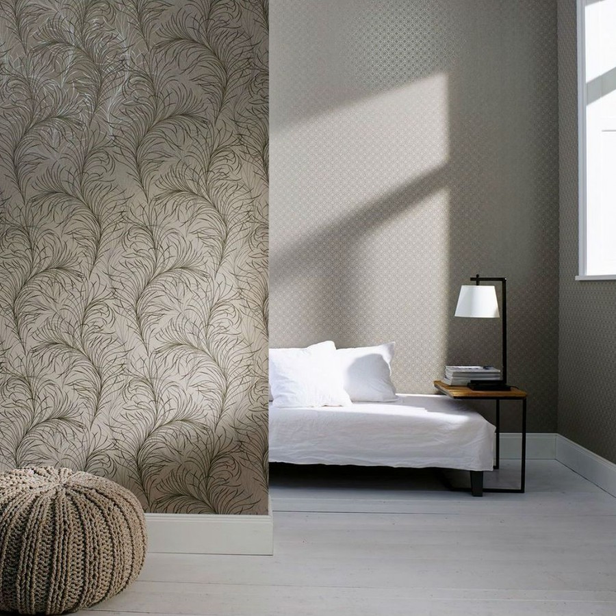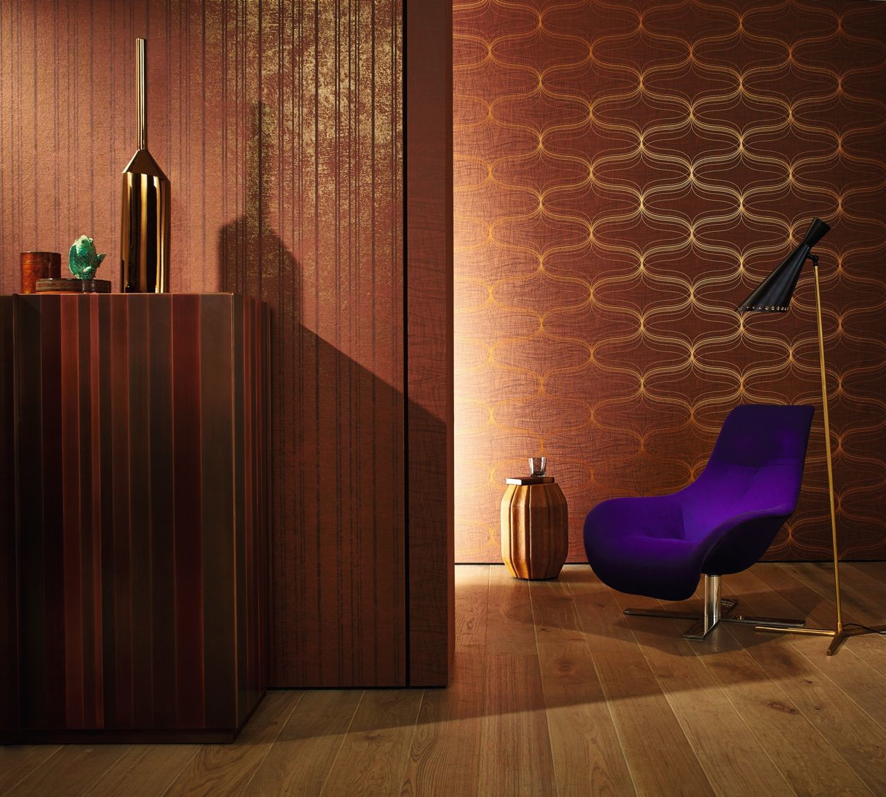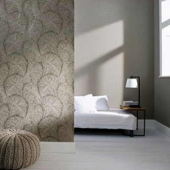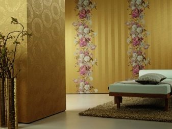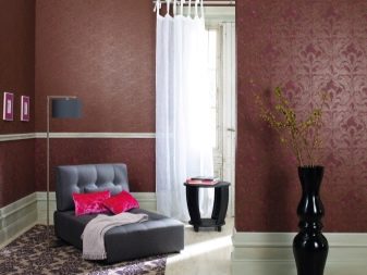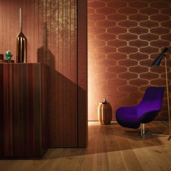 - Textiles look aesthetically pleasing. When you design a modern interior most often choose silk and satin options. New are seamless patterns that do not require fitting joints when gluing on the walls.