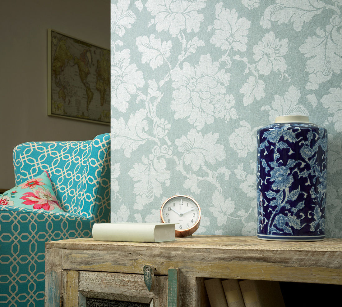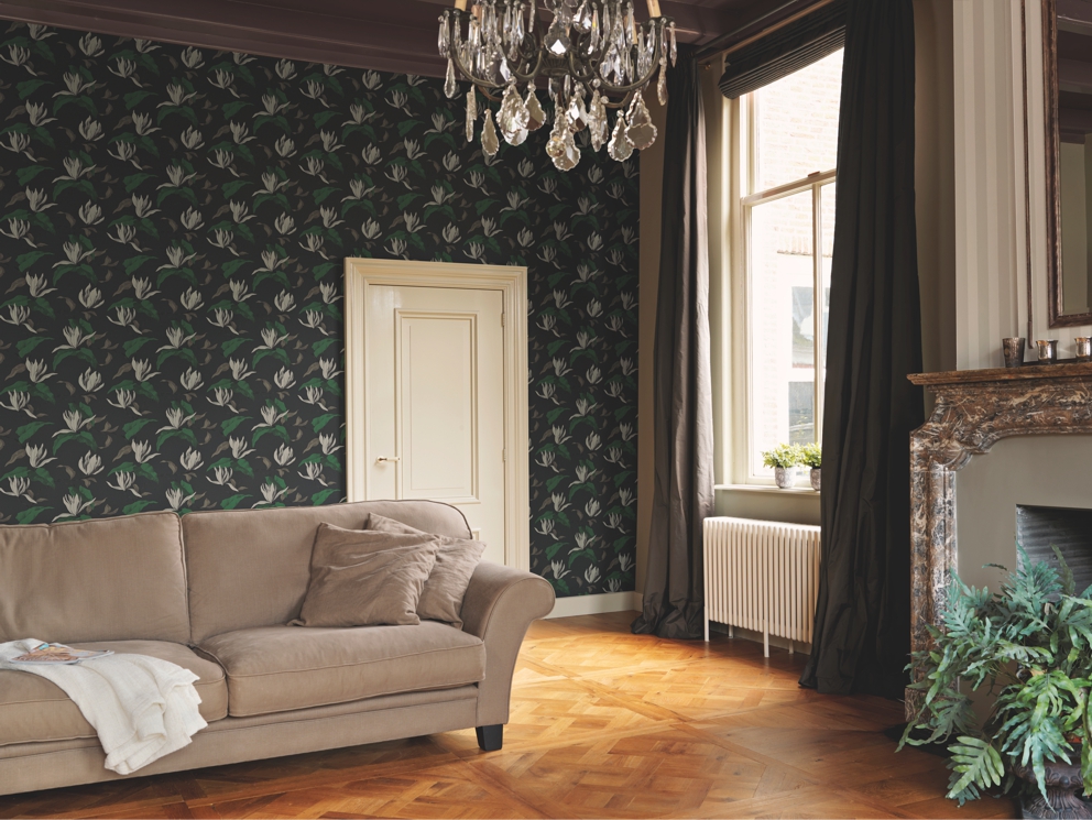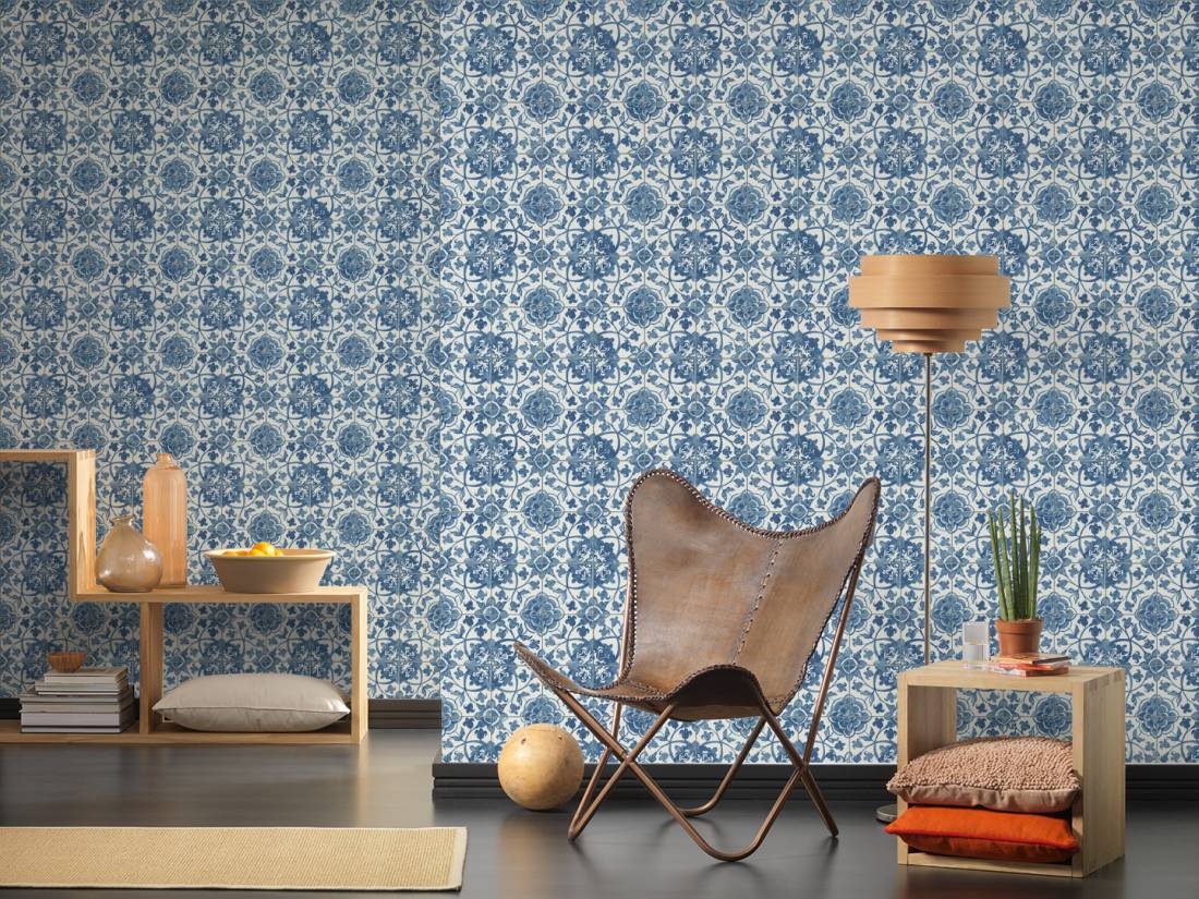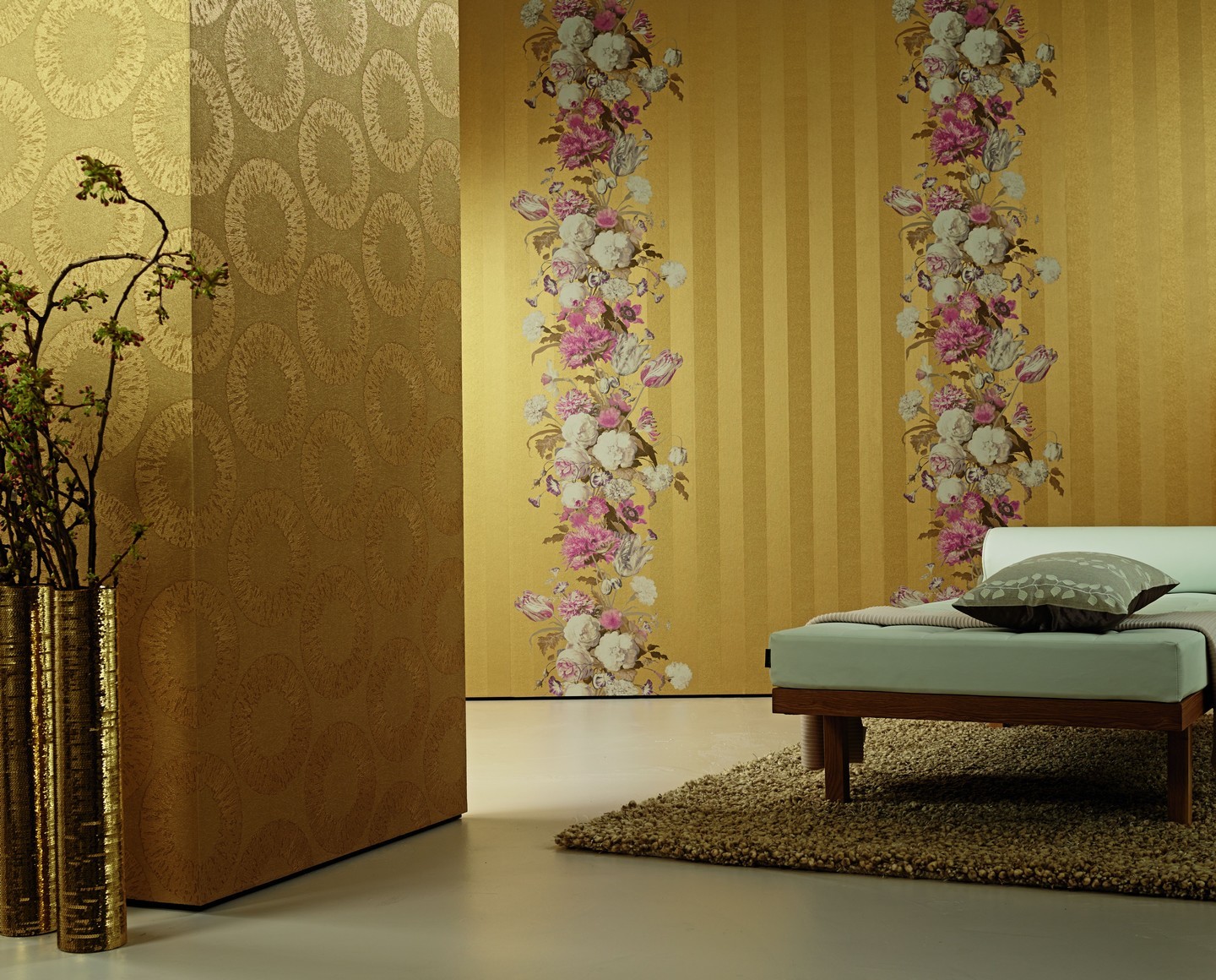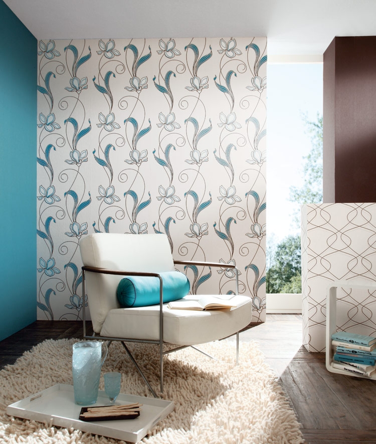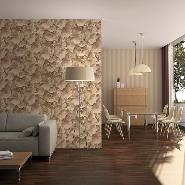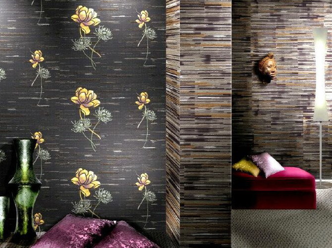 Trendy German wallpapers of ethnic character diversify the interior with a color palette. This ornament is in harmony with many shades in the interior. Large patterns in the form of flowers will give the room vividness and radiance.