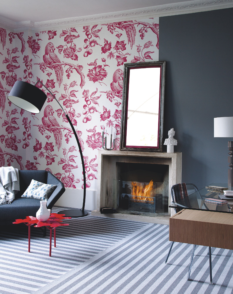 The use of bright monochromatic wallpaper can be a great way to design the walls of bold interiors.
