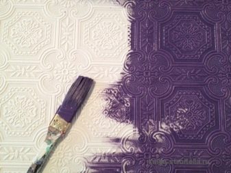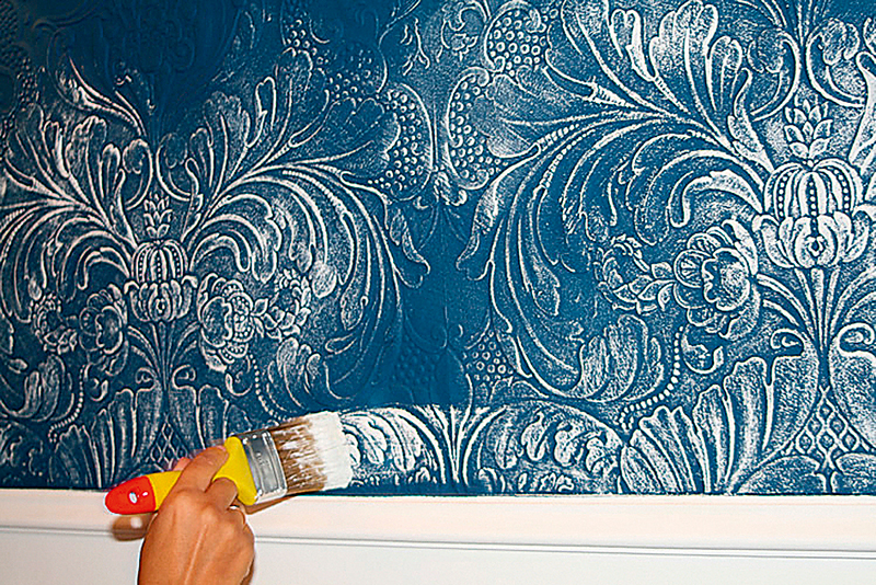 The existence of different technologies for applying paint allows you to get different results. For example, if you paint on the inside of the canvas, the shade will be soft and unusual. You can also combine two colors on embossed surfaces. To do this, apply one layer, wash it off from the protruding pattern and paint it in a different color using a foam roller.