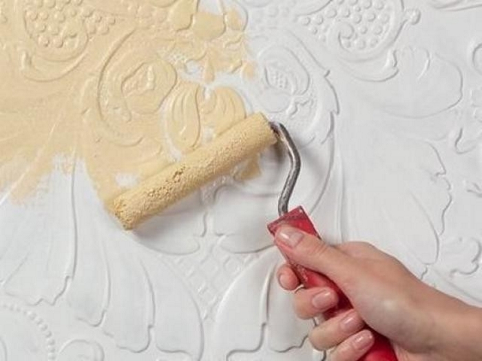 If you plan to make a textured surface, then multilayer staining can not be used. In this case, the texture of the wallpaper will be smoothed. For painting paintings on the ceiling, coloring materials are selected, the principle does not change. Whatever material you choose, you need to choose high-quality coloring compositions. The desire to save can lead to negative consequences, and the result will be far from expected.