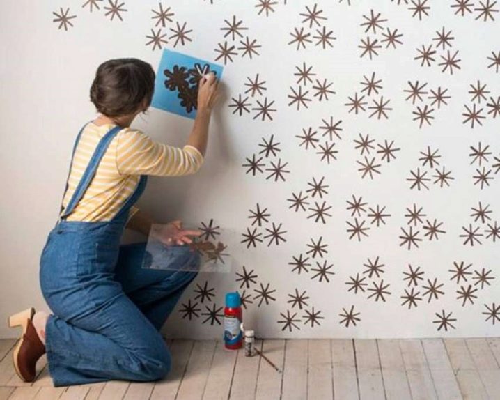 There are different ways of applying paint and making interesting decisions in the interior. Stencil is a unique option that allows you to turn an ordinary room into a unique space with an exclusive design and unusual design. Stencil can be made by hand or buy ready. It can be created from different materials: cardboard, metal, plastic. For sticking such elements on the surface, masking tape or spray-glue can be used. In this case, they easily peel off and do not leave marks on the surface.