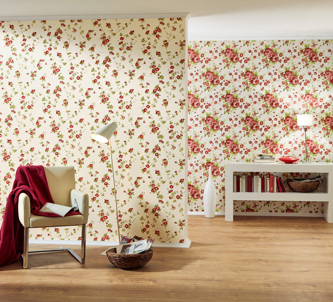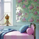 In combination with the wallpaper are selected and other elements of style that adorns the floral print: tablecloths, bed linen, curtains and more.All items must be in harmony in color, texture, pattern and other characteristics.