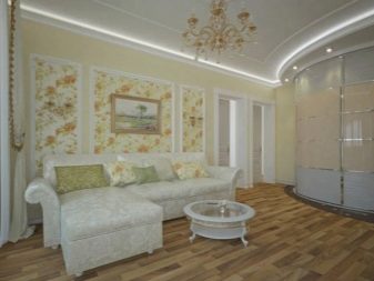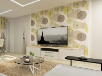 - To fill the room with color, it is recommended to pay attention to the colorful wallpaper in pastel and soft colors. This finishing option is ideal for compact living rooms. A soft palette will create a calm and peaceful atmosphere in the room.
