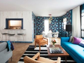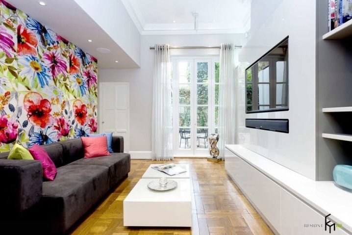 Colorful finish transform monotonous interior. As a rule, on the basis of modern stylistics neutral colors are used, and wallpapers with bright patterns will be a colorful accent of design.