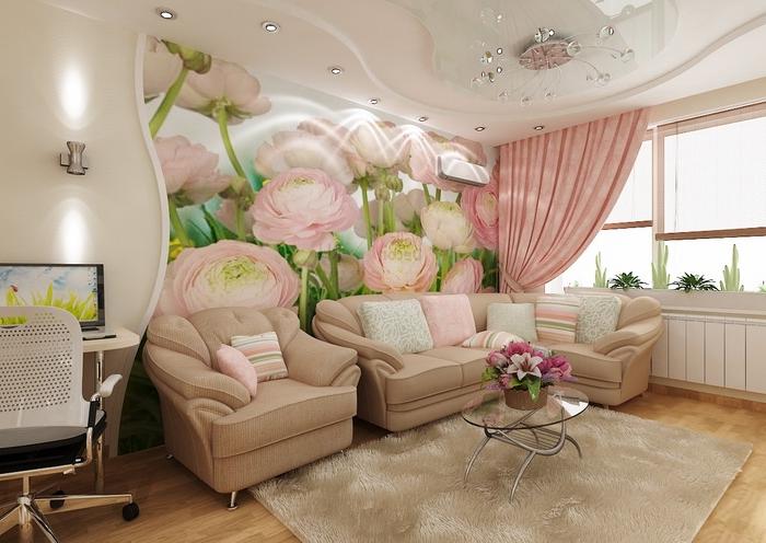 Finishing in this direction is often chosen for decorating the room of a young woman or girl. If only representatives of the fair sex live in the house, it is not surprising that the flower ornament will be used in all the rooms of the apartment building.