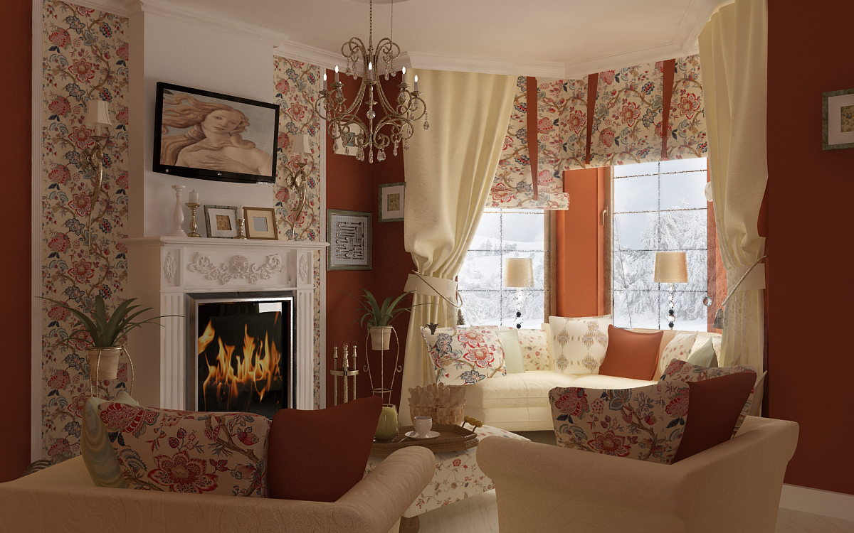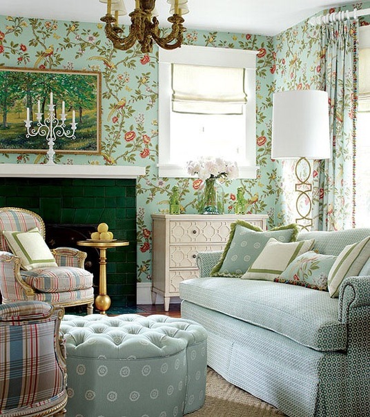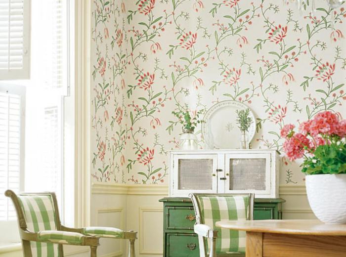 For the English style when choosing a finish using a soft and delicate colors. Ideal wallpaper with a small pattern. Roses will perfectly fit into the decor. Very rarely used material with the image of wild flowers.