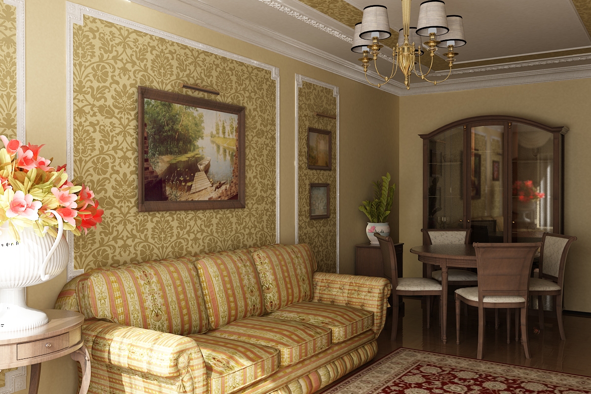 It is very important to choose competent ratio of a pattern and other elements of an interior. In this matter, individual characteristics of interior styles will help, which dictate the rules for the selection of finishing materials.