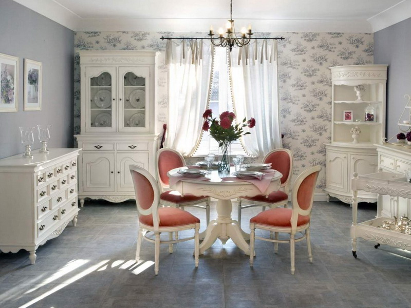 As for the size of the pattern - perfect small ornament, fully decorating the canvas. Neat flowers on a light background - the basis of the decor of Provence. When choosing finishing materials it is recommended to stop the choice on products from natural raw materials.