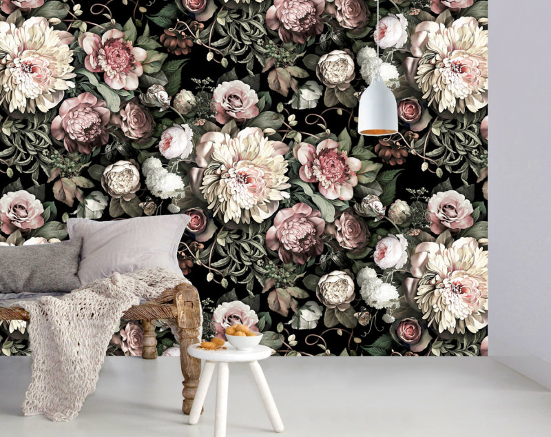 For certain stylistic directions, wall covering with flowers is an essential element.In the field of design, a variety of prints are used, from large and bright buds to small and neat patterns. The picture can be placed on the canvas randomly or systematically, creating a rhythm.