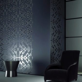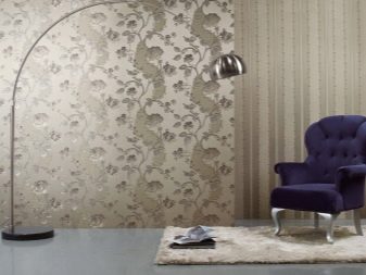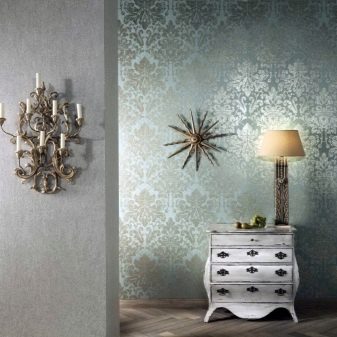 Silk-screen printing is the most unusual type of decoration of vinyl wallpaper, creating the effect of draping walls with expensive silk fabrics.