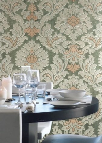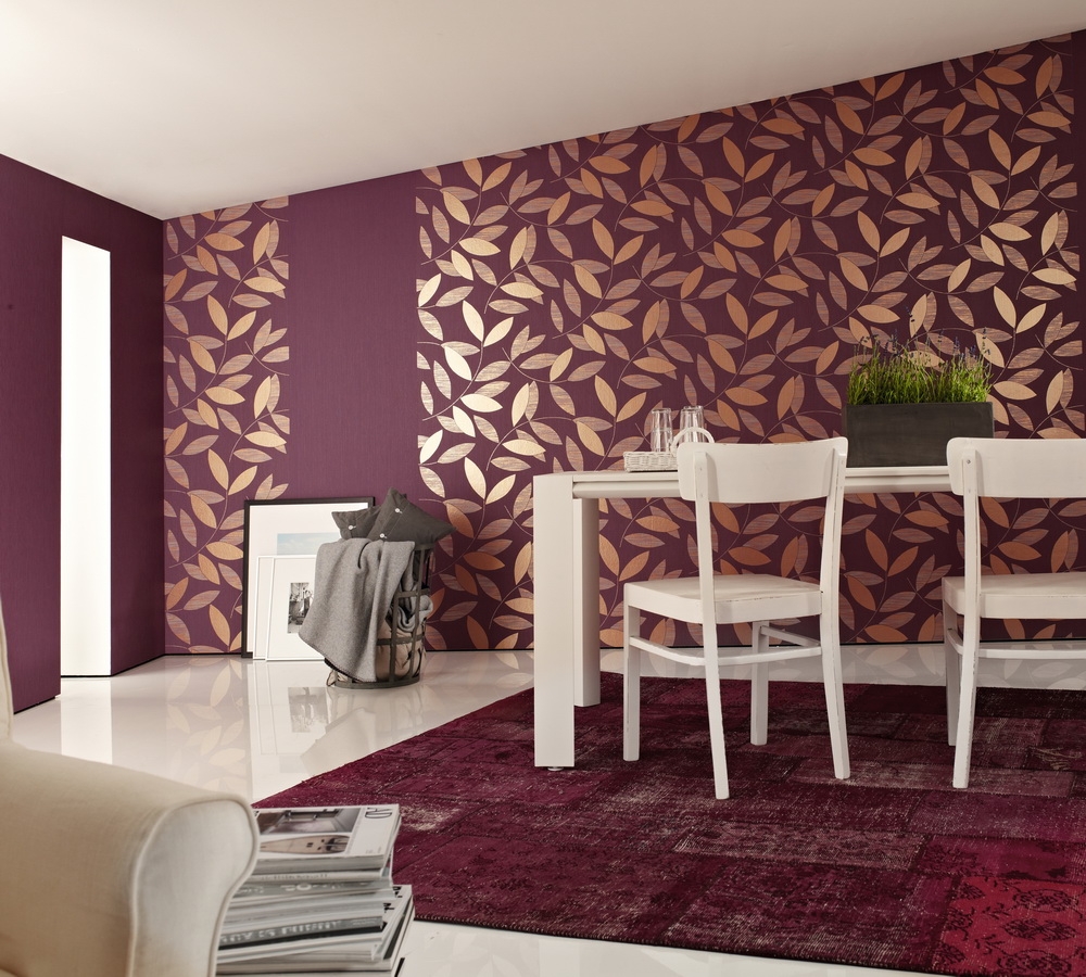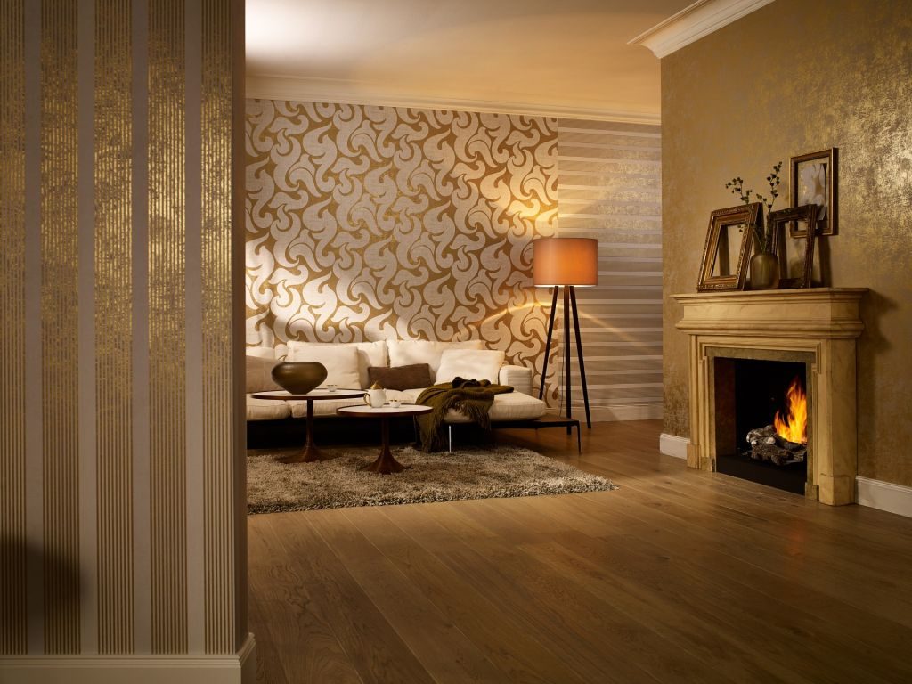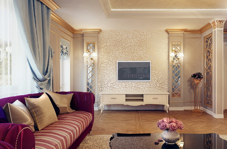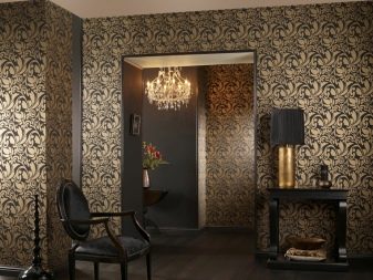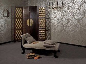 Geometric patterns, ethnic motifs, abstraction will decorate rooms decorated in a variety of styles. Wallpaper looks great with gold ornaments, but the main thing in working with such colors is to be guided by a sense of proportion. In a small room, gold or silver inclusions are sufficient to use only one wall in the decor.