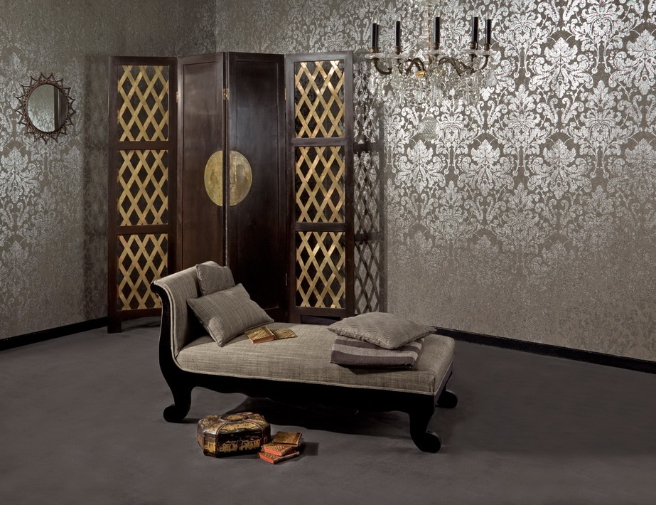 Even if you are not the happy owner of furniture in the style of the XVII century, it does not mean that wallpaper with silk-screen printing will look inappropriate in your room. They are perfectly combined with modern furniture. There are an incredible amount of ideas for decorating rooms with silk effect wallpapers: