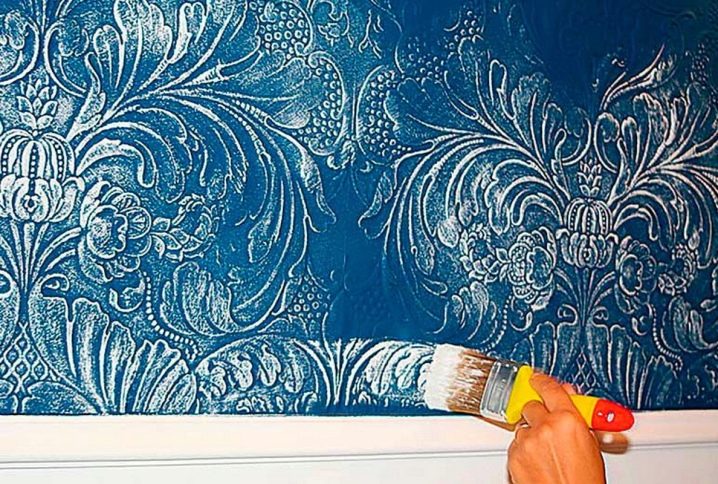To paint silk wallpapers or not is a debatable question, because after painting the embossed patterns look not so impressive anymore, the characteristic luster is lost. If the decision is nevertheless made in favor of painting, you need to purchase acrylic paint on a latex basis, predominantly of light colors, in order for the drawing to appear through a layer of paint.