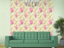 - "Garant" - acrylic wallpaper with a width of 53 cm in the amount of 56 different design options, including floral motifs, abstraction, monograms, lace, imitation of decorative plaster, a combination of stripes and monograms, made in delicate shades of pastel colors, as well as mint and burgundy colors;