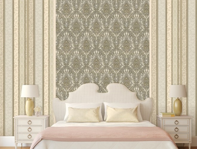 - "VIP class" - wide meter vinyl wallpaper on the basis of non-woven fabric with a claim for premium, made in muted colors of the color palette, among which are dominated by canvas with monograms, vertical stripes and smooth zigzags, wavy lines and lace curls (convenient in pasting canvas with non-stretchable and non-decaying structure high dimensional stability and easy replacement in case of dismantling);