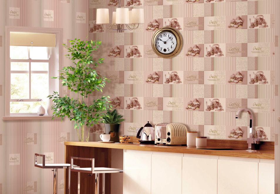 - "Venice" - a bright line of narrow (53 cm) washable wallpaper for the kitchen, made with the use of intaglio printing technology, cloth with a pattern of brick, tile laying, stone and marble print, as well as varieties with flowers, sunflowers, coffee sketches, greens, fruits seals for sealing wax;