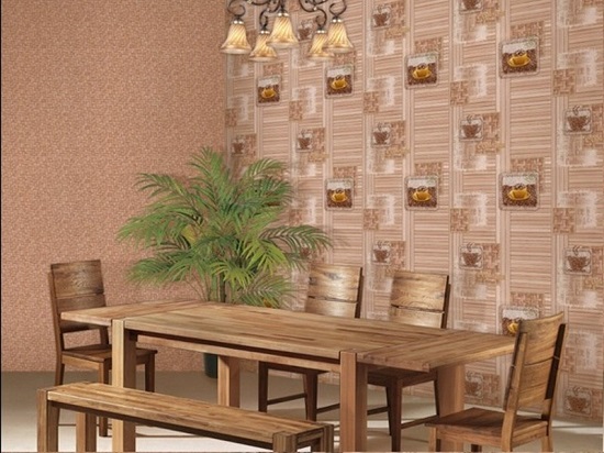 - "Expromt" - a collection of narrow wallpaper paper-based vinyl mainly kitchenthemes with a pattern for laid brick, lamella, tile, photo wallpaper, mosaic, selected in bright yellow, orange, blue, blue, green, beige, gray, brown, red, turquoise shades (in the line there are a lot of drawings in the form of cups, wine, apples, teapots, butterflies);