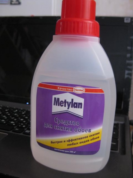 - The company "Metilan" offers its means for removing wallpaper "Methylan" 500 ml, article 684531. Work with this solution is quite easy, before use, it is necessary to dilute it with water in certain proportions specified in the instructions. Then you need to handle this mixture surface. It is suitable for all types of canvases, including heavy ones. This method has clear advantages.First, the resulting composition does not spread like water, and after the release of the wallpaper will not need to wash it off from the walls. One package is enough for surface treatment of 200 square meters. m, that is, it is quite economical. The drug is odorless and does not emit harmful substances into the atmosphere, that is, it is environmentally friendly. The price of such a composition is about 300 rubles.