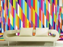 If the furniture in the room is replete with original chaotic lines, and the materials from which it is made are a daring mix of metal, plastic and wood, the poisonous colors of the wallpaper will fit into such an ensemble very appropriately. By the way, if you select a softening light in the room, it can from time to time compensate for the excessive brightness of the colors, which is a rather bold and unconventional solution.