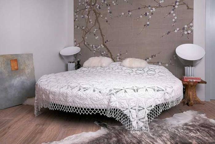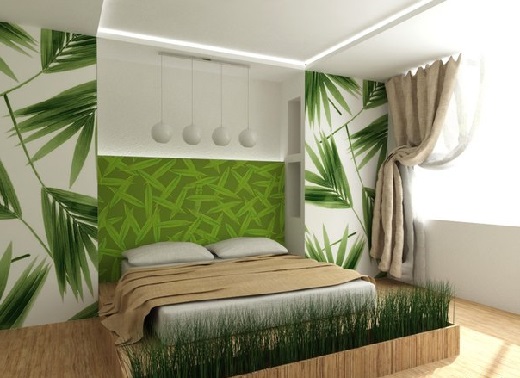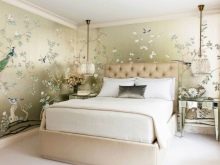 Particularly light will give any bedroom foam vinyl wallpaper. In this case, it is recommended to give preference to white, cream or light beige colors with a relief pattern of "Sakura" of various shapes. It will look very nice picture, made in the form of reeds or long stems. It is desirable to stop the choice on monophonic variants that brightness and excessive appeal of a print did not interfere with high-grade rest.