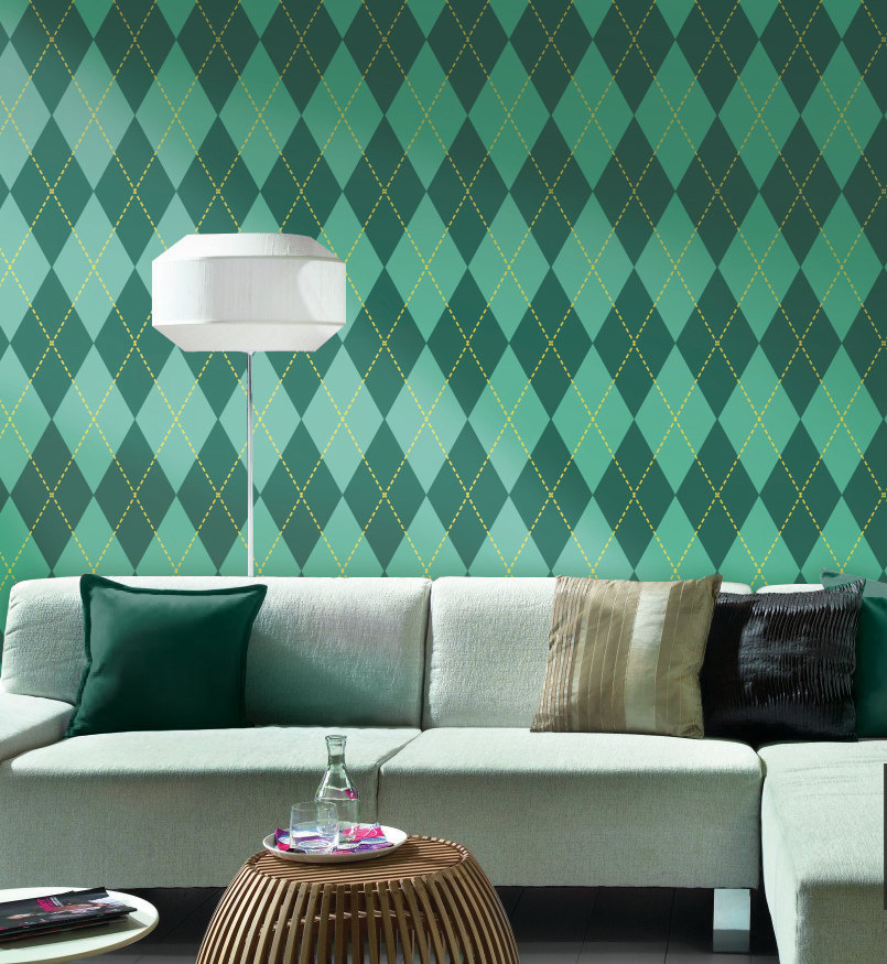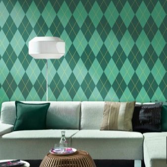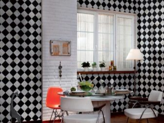 Diamonds are non-standard pattern. Such wallpapers are categorized as “geometric”, and they are recommended to be used only if the furniture does not have sharp corners and motley upholstery merging with the wall. When choosing, it is important to keep in mind that any geometric shapes are suitable only if if the whole room is decorated in a modern style, such as high-tech or minimalism, and if we are talking about a classic interior, any geometric types of wallpaper should be excluded.