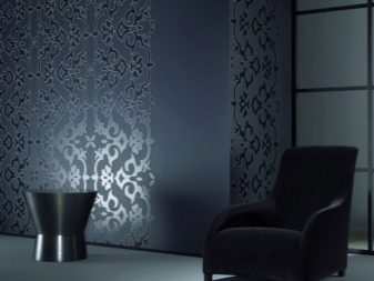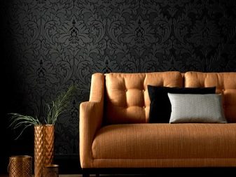 Black wallpapers with silk-screen printing will look especially impressive if they are painted with a pattern of sakura, peonies or large roses. With a skillful selection of colors of furniture and other interior items, it is these patterns that will perfectly fit into the atmosphere of classical rigor, adorning it with a hint of vividness and a bright floral palette.