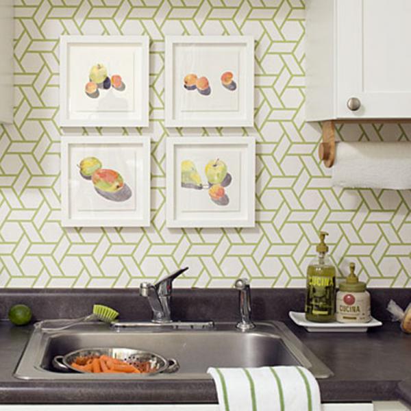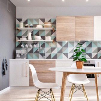 If there is no financial opportunity to purchase a model with the highest degree of durability, and to glue over the kitchen, you still need to, you can “save” the “risky” area of the kitchen apron with wallpaper with any geometric pattern. Since such options are not particularly in demand, the price for them is often much less, and the quality is high. Having selected a kitchen apron in such a non-standard way, the rest of the kitchen can be decorated with more “budget” versions of wallpaper having a uniform color.