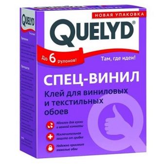 To glue vinyl wallpaper you need a special type of glue. On sale you can find a lot of his options.The most reliable and common brands of such glue: Quelyd, Pufas and domestic "Methylan." It is important to be attentive when breeding and do not allow too much waterbecause wallpaper will lag behind the walls immediately after sticking. You can not use glue for ordinary wallpaper, so as not to spoil the trellis and walls.