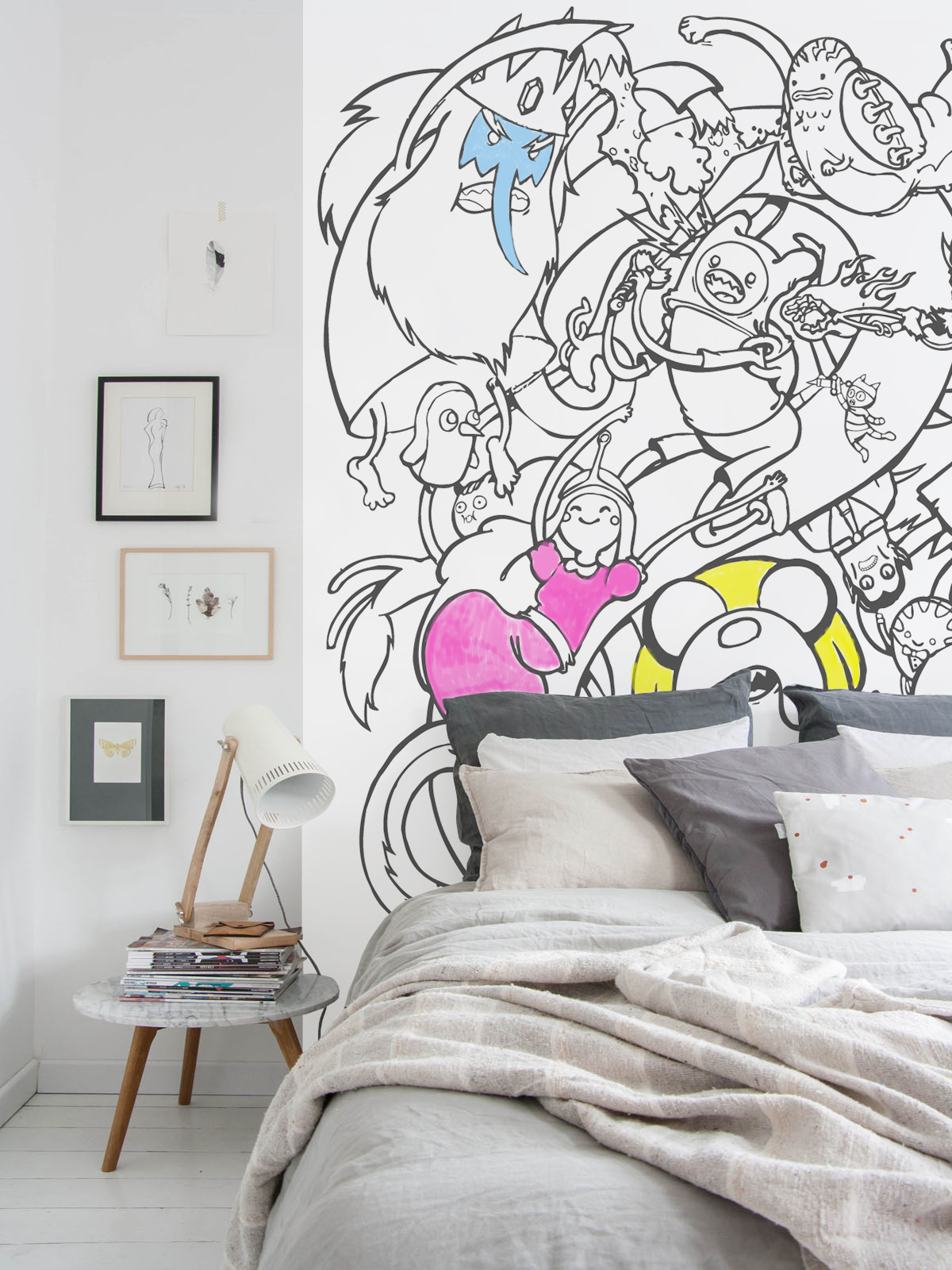 Among the beautiful and modern examples in the interior, it should be noted wallpaper-coloring. Many will be surprised, but this version of vinyl coatings has been around for a long time. It is known that young children sometimes like to draw on the wallpaper: give them that opportunity by painting wallpaper on the nursery.