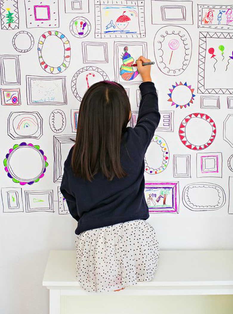 The unique coating not only endures markers, felt-tip pens, pencils and paints, but it can be cleaned and reused at any time.