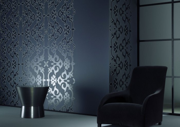 And the last type of coatings is silk-screen, which are in first place in terms of aesthetics, immediacy and sophistication. In the manufacture of these textured wallpapers, heating to high temperatures using high pressure is also applied. This is what creates the effect of expensive silk fabric. Such options are very expensive, but it doesn’t take away the popularity, because beauty in them is wonderfully combined with practicality and durability. All silk-screen coatings have a durable water- and dust-repellent effect, and their service life is more than ten years.