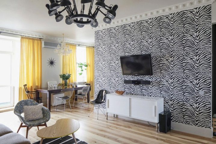 There is no limit to the variety of design of vinyl coatings, as well as their colors. Depending on what form a pattern or drawing has, you can create one or another effect in the room and emphasize its most advantageous sides, while hiding the disadvantages. For example, wallpaper, strips of which are arranged vertically, can make a low ceiling visually higher, and if the strip goes in a horizontal direction, the space will visually expand, which is relevant for a small room.