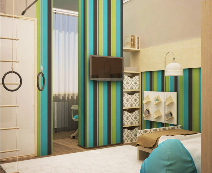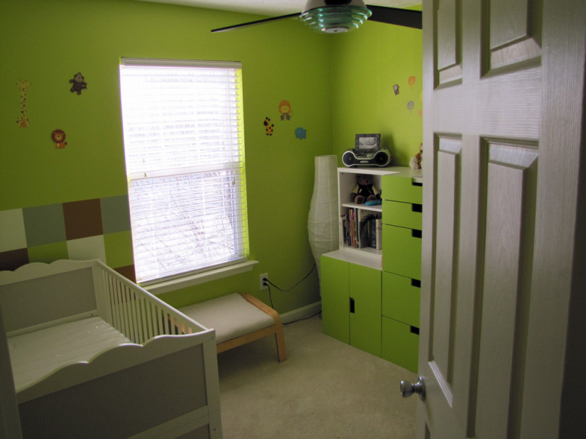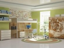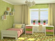 For a children's room, green fits perfectly. The choice should stop at the calm shades - pale green, light olive, pear, beige-green or ocher. If you still decide on a bright color, it is better to let it be an accent on one of the walls. The rest should be calmed down with pastel colors. The room should create a cozy, relaxing atmosphere. The child, surrounded by green color and laconic furniture, will be in high spirits, but will not be over-excited.