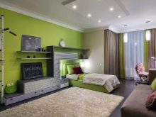 Teenage interiors can be made more saturated. Black-green or a mixture of green and violet reflect the energy of youth and creative impulses.