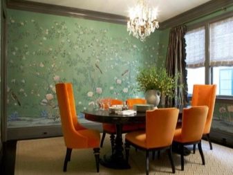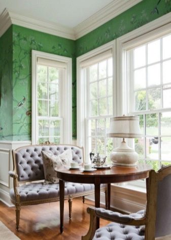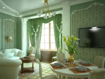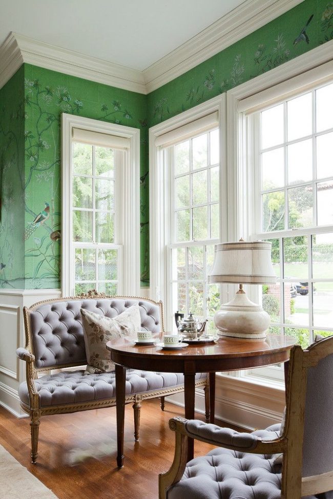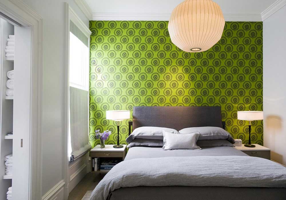 Of the thousands of wallpaper options, you can choose discreet light classic paintings and not be mistaken with their appearance in the interior. They will not spoil the overall picture. But if you like bold bright shades and combinations, you can opt for a rich shade. Green is a very expressive color. To some, it may seem too radical, but you just need to competently approach the choice of color, pattern and style of the room.