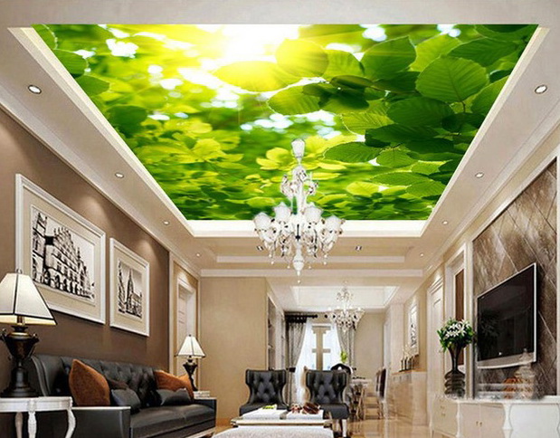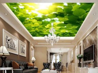- Ceiling wallpaper. Many prefer such types of finishes because of the ease of installation, the uselessness of the prepared surface (as in the case of painting) and environmental friendliness (as opposed to suspended ceilings);
