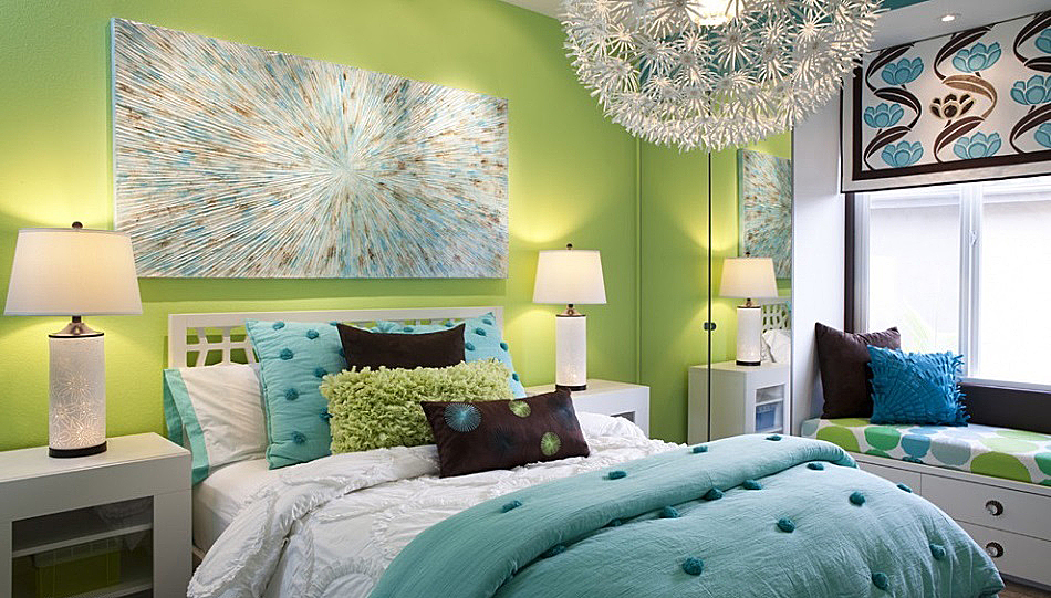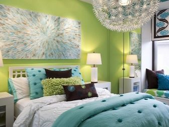 Turquoise walls in combination with pale green in the bedroom or living room will create an airy and fresh space, giving away sea and coolness. Very good choice for housing, located in a hot climate.