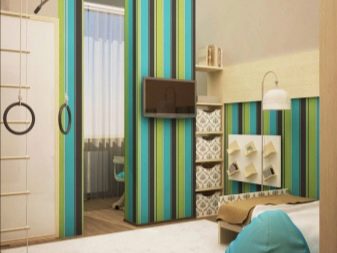 Striped green with brown wallpaper - the most standard and successful solution in this case.