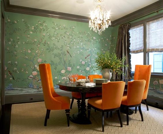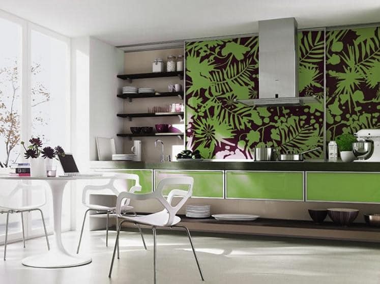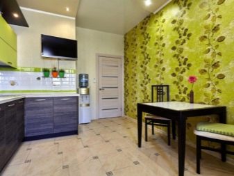 In the kitchen, many tend to apply green trim. It is believed that this color suppresses appetite. The main thing is to choose high-quality and beautiful wallpapers and skillfully combine them with the situation. Bright green is not suitable for an active and rich kitchen set. In this case, it is better to choose pale shades, and furniture in bright soothing colors to complement the expressive and cheerful canvases.