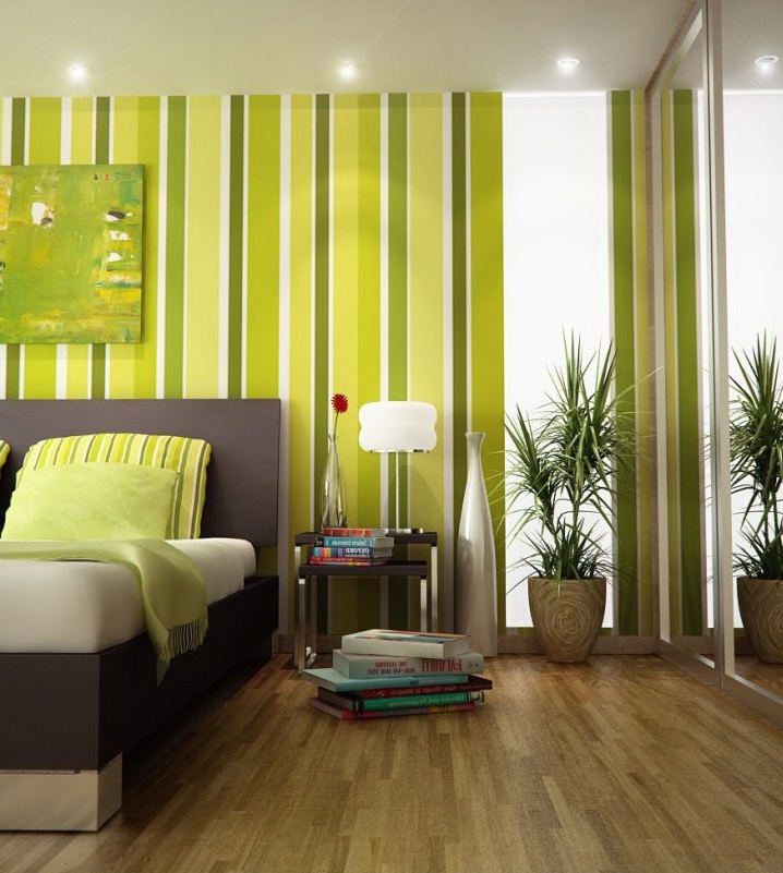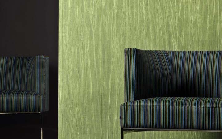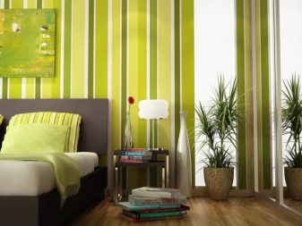 The choice of textures of green wallpaper is huge. Lovers of classic and simplicity will appreciate the striped fabric. Refreshing effect with strict geometric lines will complement the laconic furniture dim colors.