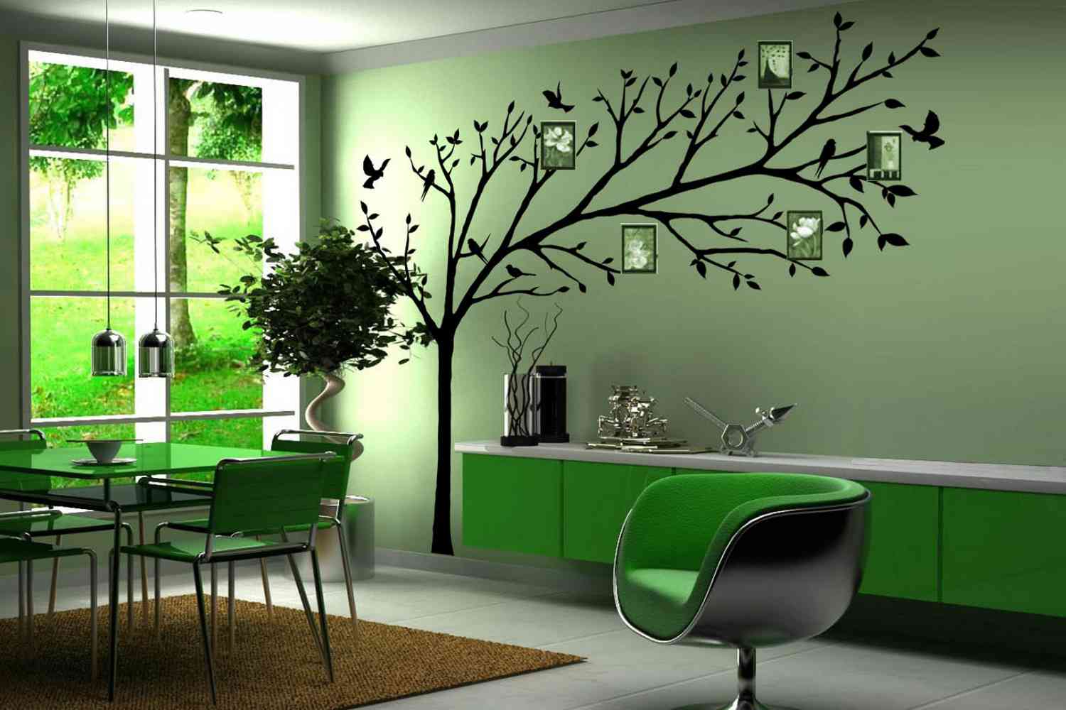 Green wallpaper - a bright solution in the interior