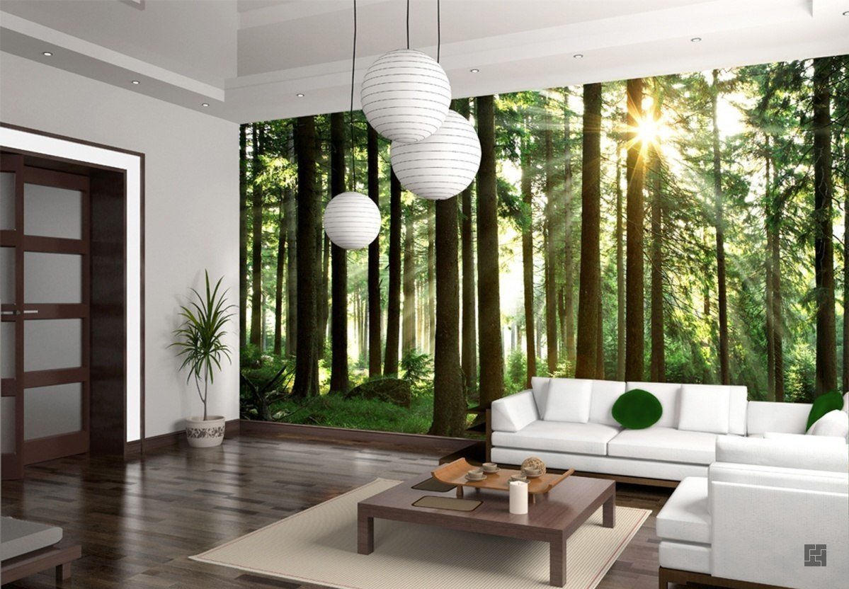 Supporters unity with nature will choose for themselves cloths or wallpapers with leaves, woods, grass or vines. Chamomile field or a carpet of autumn leaves, the crowns of trees in the sunlight will give the feeling that you are on a hike with a tent enjoying the beauty of nature.