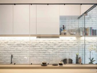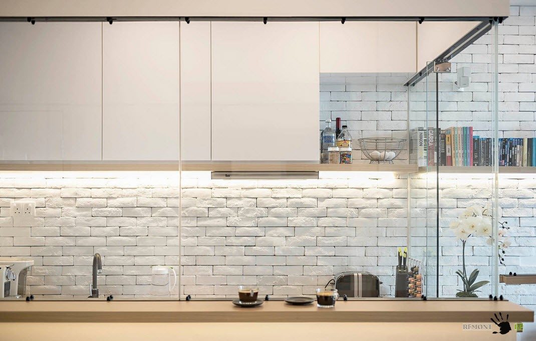 Glossy brick tiles for kitchens is a relatively new finishing material, just starting to manifest itself in this market segment. The shiny surface of this tile creates a lot of unusual and stylish curious effects in interior design.
