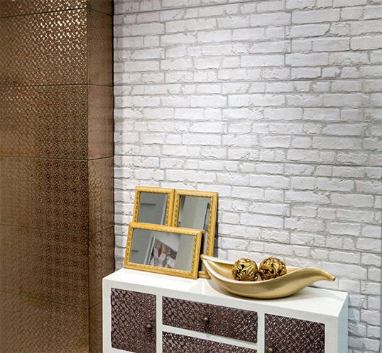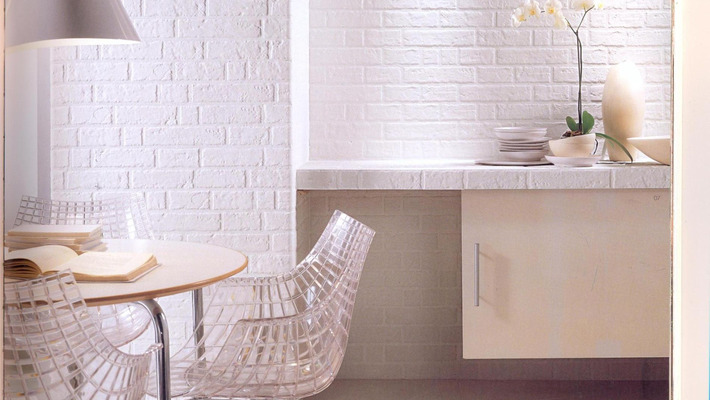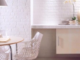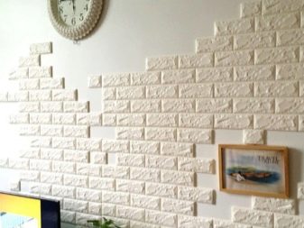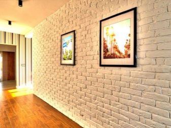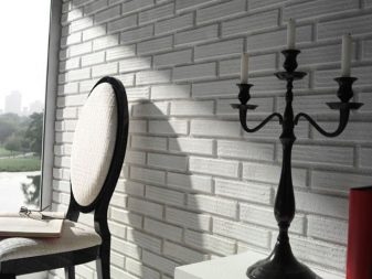 Facing white brick tiles can be organically combined with other types of finishing building materials such as wallpaper, stone, lining, and with various types of plaster.