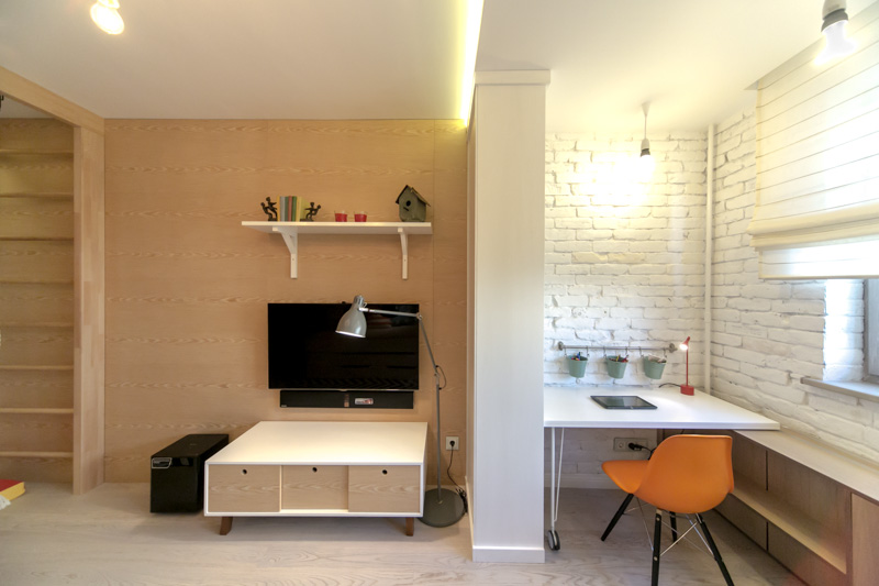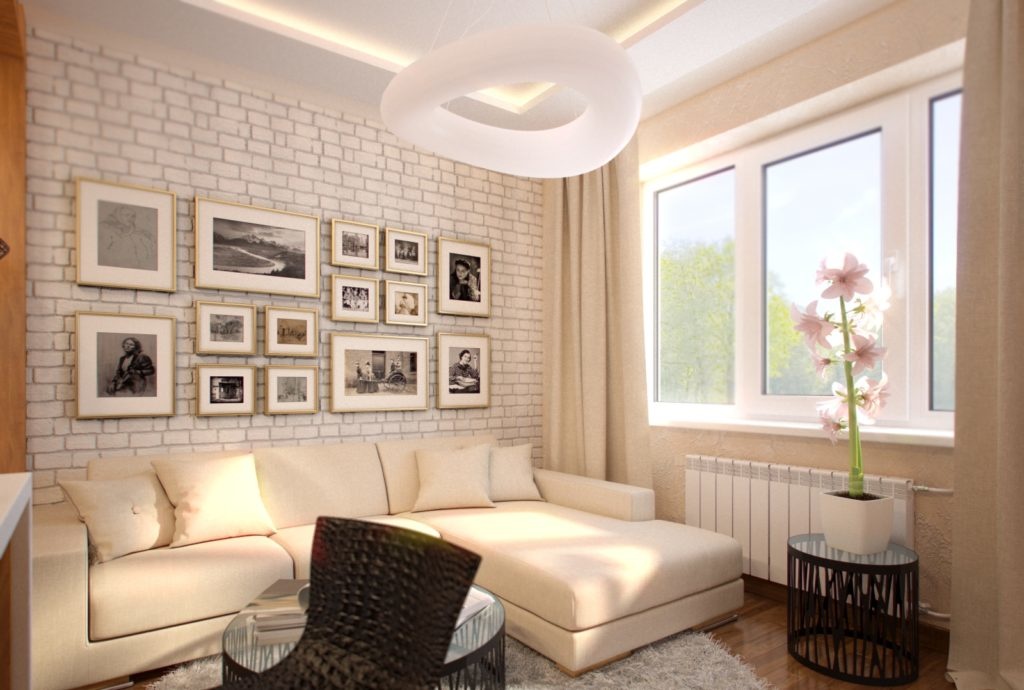 At the same time, imitation of brickwork in one corner of the room will look stylish, this is an ideal option for a small room if you have a great desire to use a brick to finish it.